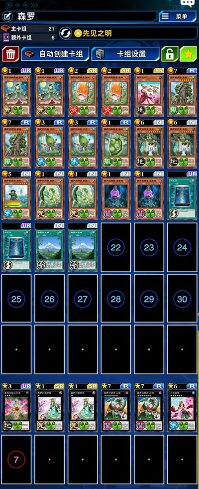森罗这套卡组其实到现在已经有些后劲不足了,毕竟是2018年推出的卡盒,而且至今也没有新的本家大哥。推荐这套卡组主要是因为它的展开能力比较强,但缺点也很明显——缺乏有效的防坑手段。这里推荐带一张风书和一张月书,我个人习惯用两张月书。额外卡组加入六花使能提升不少上限,不过要叠出来难度不小。我用这套卡组在传奇段位打了10场,赢了4场。