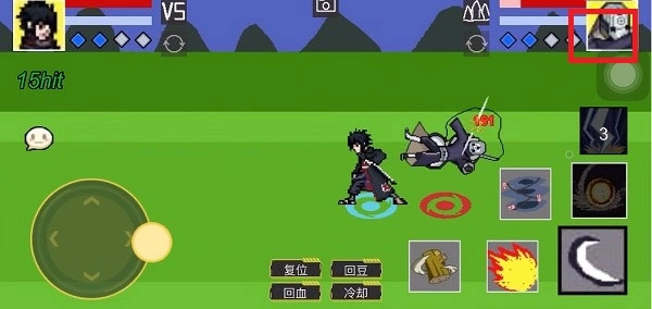 2、然后在释放大招的过程中,点击【复位】上方的隐藏按钮,可能会出现卡顿的情况。