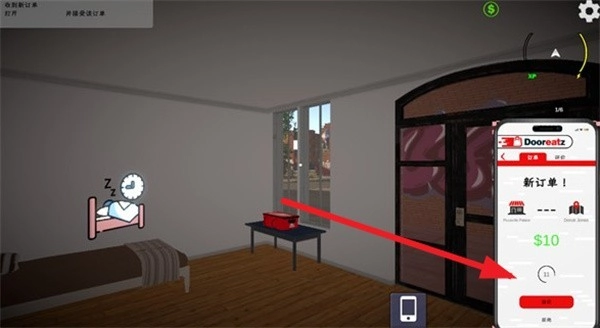 2、随后角色起身,正式开始外卖配送任务。