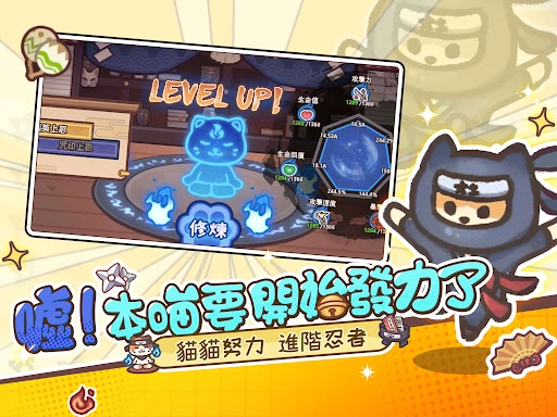 在《忍者喵喵喵》这款游戏里,玩家能够学习并升级火焰、雷电、风暴等各式各样独特的忍术技能。