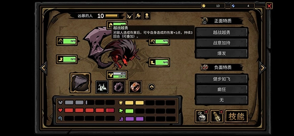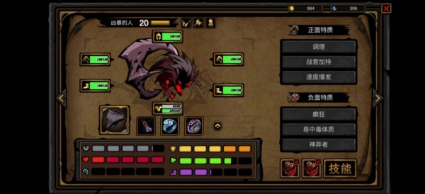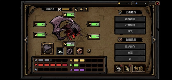 主养凶暴的角色,在主力技能尚未解锁时,可用横扫技能暂时代替;其他主动技能可以先不学习,优先将被动技能点满,其中至晕打击和以战养战这两个被动技能建议优先升级。前期要注意控制疲劳值,到了后期疲劳就完全够用了。