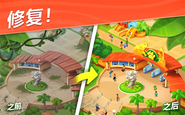 丰富的体验:画面精致绚丽,音效鲜活逼真,为玩家带来沉浸式的视觉与听觉双重享受。此外,游戏的情节与任务设计妙趣横生,让玩家能深度沉浸于打造和运营动物园的欢乐之中。