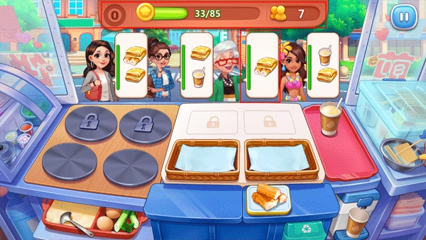 2、玩家需依据客人的口味制作她们喜爱的煎饼,不过要留意旁边的绿色进度条,它代表着客人的忍耐值,一旦忍耐值变为红色,就意味着客人已经十分生气了。