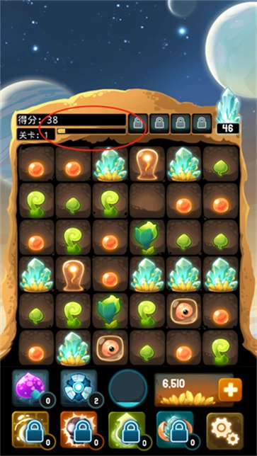 3、当顶部进度条填满后,即可进入下一关,同时会获得金矿与水晶矿奖励。另外,务必尽可能提升连击次数,连击越多,分数增长速度越快,还能额外获得水晶矿以增加行动次数。