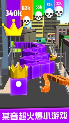 2、在这个简洁的城市场景里,你能够持续移动,去寻找更多小蛇并将它们吞噬。