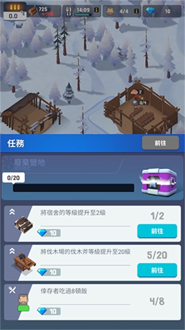 《冰冻之城》是一款十分有趣的单机经营养成生存游戏。在游戏里,玩家将化身为末日冰雪世界中的幸存者,需要收集各类资源来建造一个理想的庇护所,还得招募人员进行建设,逐步打造出一个完整的小镇。游戏内设有完善的系统引导,玩家可以依照系统提示去完成一系列任务,比如建造生存建筑、定量收集相关资源以及升级建筑等,因此上手起来非常容易。