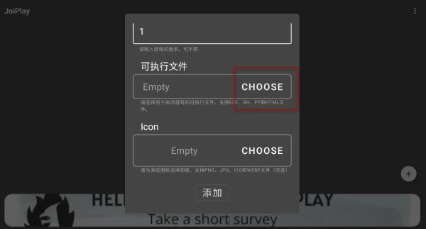 4、图标可选择不设置,或任选一张图,之后点击添加,再打开即可。
