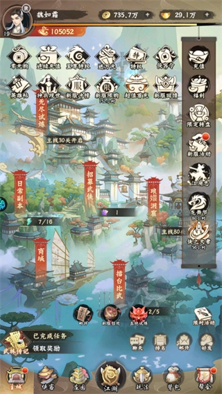 《王侯将相》是一款休闲趣味十足的竖版放置武侠挂机游戏,以经典江湖武侠小说为背景,为玩家打造了一个热血精彩的侠客江湖世界。在0.1折官服版本中,游戏采用水墨国风画风,完美还原了杨过、小龙女、老顽童等众多经典武侠小说角色,玩家可自由招募并培养专属冒险小队。