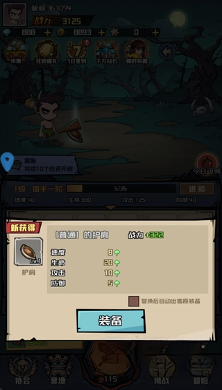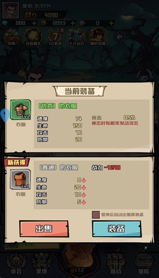 3、每次击败敌人后,都有概率获得装备掉落。界面上的绿色箭头意味着该装备品质更优,可直接替换当前装备;红色箭头则表示装备品质较差,建议出售来获取金币。