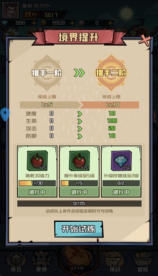 4、当角色实力达到特定水平后,即可解锁“进阶试炼”功能。在该功能中,玩家能够挑战高难度关卡,从而获得丰厚奖励与稀有道具。