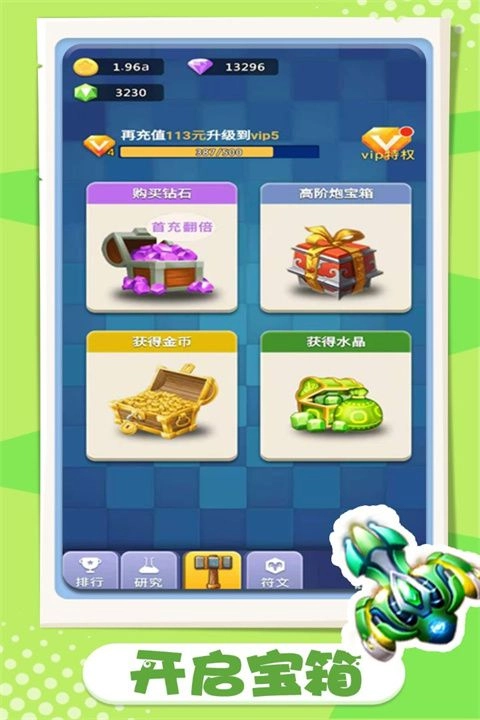 4、合成室可根据实际需求进行升级,当炮台位置不足时就提升几级。随着科技、符文的等级提高,合成室的空间会逐渐不够用,大家可根据自身情况调整,后期通常升到50级左右即可。