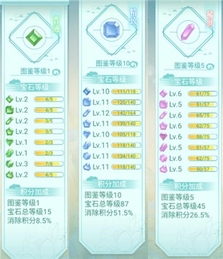 5、在消除宝石时,连消的次数越多,获得的积分就越丰厚。通过收集对应宝石,不仅能提升宝石图鉴中相应属性的加成效果,还能获得更多的消除积分加成。而收集不同种类的宝石,则可以为玩家增加不同的属性。
