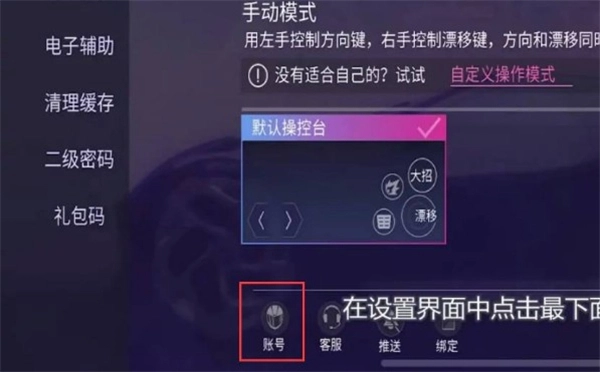 1、打开王牌竞速界面后,点击右上角的设置图标,进入设置界面后,点击最下方的账号选项。