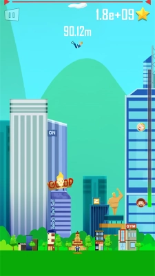3、把人物抛出去会使其飞到空中,抛得越高得分就越高。抛出人物后,在其即将落地时再次点击屏幕,能将人物再次抛起。累计抛得越高,得分就越高。
