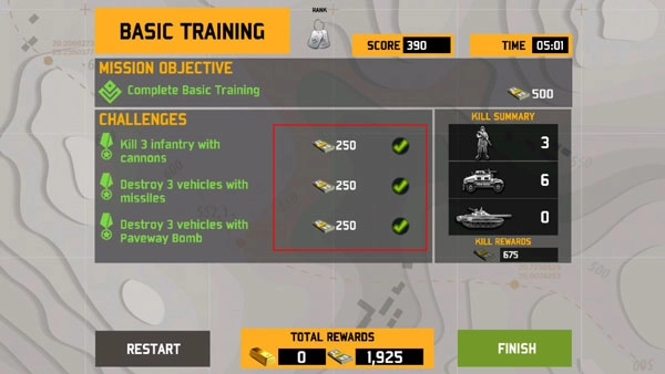 进入ARMS RACE模式,与其他飞行员展开激烈对决,体验刺激的PVP战斗。在这个同步多人玩法中,5名玩家将共同完成10项随机挑战,每项挑战都配备不同的武器。最终,完成度最高的飞行员将赢得胜利!