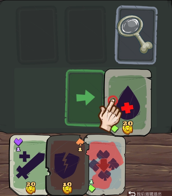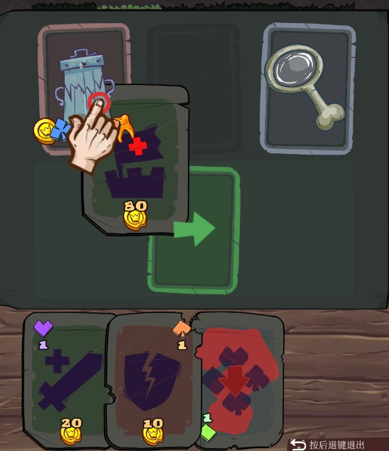 5、回收的时候要留意回收桶,它会“咬”人并造成1点伤害。拿到绿色符文后,就可以使用治疗卡片了。