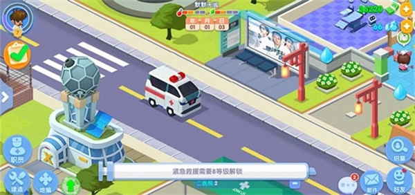 医院等级提升后,慕名前来的患者数量会不断增加,玩家因此需要建造更多的医院设施。