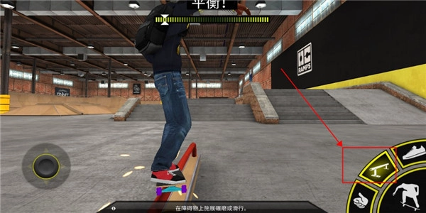 3、这个是碾磨按键,在栏杆等地形上按住此键就能滑行,把它和方向键搭配使用,还能做出不同的平衡动作。
