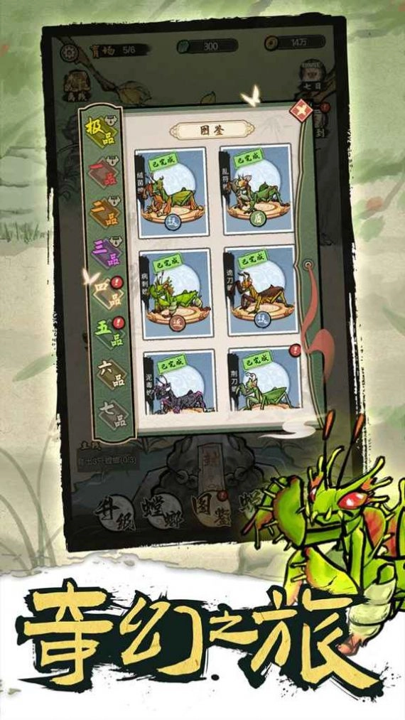 3、面对重重考验,关卡持续升级,还有形形色色的螳螂等待你去捕捉。