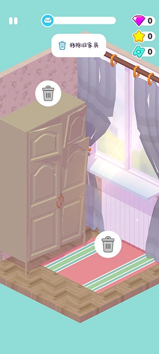 家居设计地图支持随意点击,不用按固定顺序游玩关卡,你可以探索地图上所有不同的房间,在任意位置进行装饰。