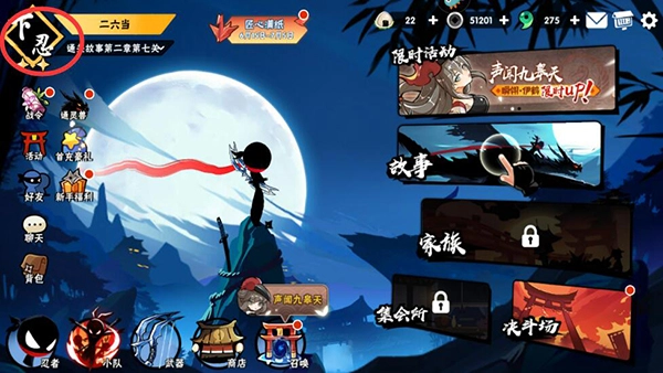 2、接下来回到主界面,我们在左上角的忍者级别