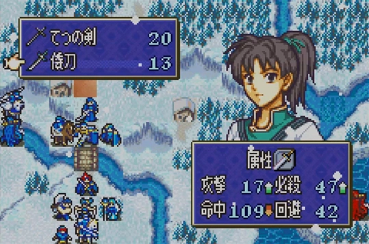 这款作品依然延续了系列标志性的战棋玩法,武器类型包括剑、枪、斧、弓、理、暗、光、杖八种,不同职业会根据自身特性适配不同武器,各类属性也都各具特色。此外,借助GBA的通信功能,还能支持2到4人联机练级与对战,让游戏体验变得更加丰富多元、充满乐趣!