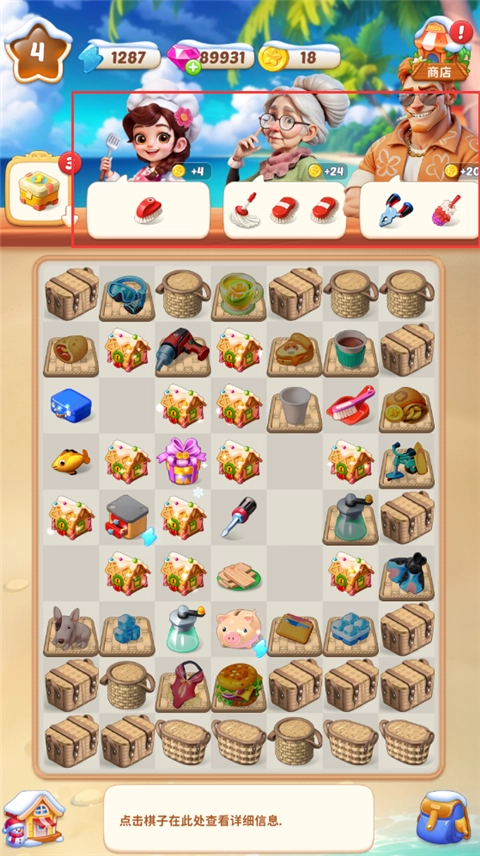 2、在界面里查看任务要求的物品,把正确的物品放到格子中,就能得到金币奖励。