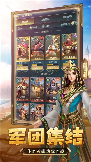 有了军队,自然少不了将领,这里汇聚着来自多文明的英雄领袖,正等待你的召唤。你既可以选择带领他们驰骋战役关卡,获取丰厚的道具奖励;也能指挥他们率军出征,在沙场上纵横捭阖,成就威震天下的赫赫威名。