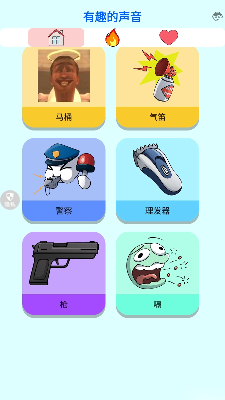 恶搞音效模拟器华为版提供了简单的声音内容,你可以随意点击一个声音进行播放。这里面的声音类型十分丰富,在首页就能看到六种分类,点击对应的分类后会展示多个子项目,你可以从这些子项目里点击任意声音开始播放。无论是在玩电脑时播放特殊声音,还是在语音聊天时播放恶搞声音,它的使用场景都非常多。直接打开恶搞音效模拟器,就能随时选择你喜欢的声音播放,比如可以播放警察相关的声音,里面有多种警笛长鸣的音效,能让你体验到紧张刺激的感觉,有需要的朋友可以来体验一下。