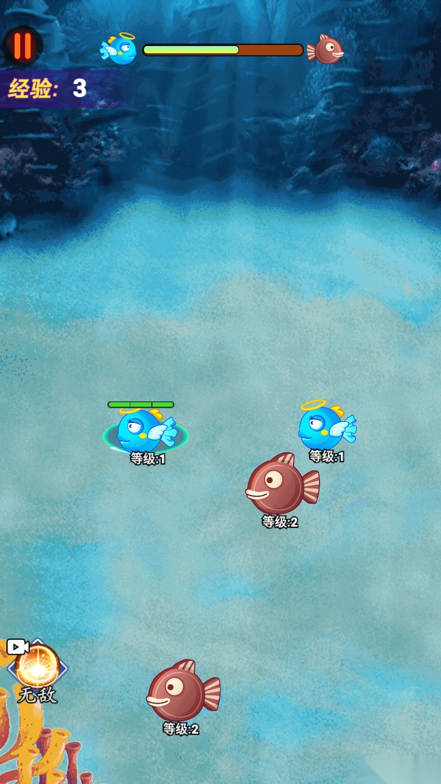 6、海洋地图玩法中,玩家能够进入海底,直接吞噬其他鱼类,从而成长为体型更大的鱼。
