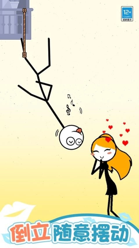2、倒立自由摆动的关卡中,有一个角色倒立于中间,您需要调整该角色的姿势,使其亲吻到下方的角色,即可挑战成功。