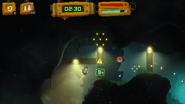 1、在狭窄的洞穴通道里操控喷气背包飞行时,不仅要避开尖刺、滚石这类静态陷阱,还得应对突然袭来的敌人攻击。