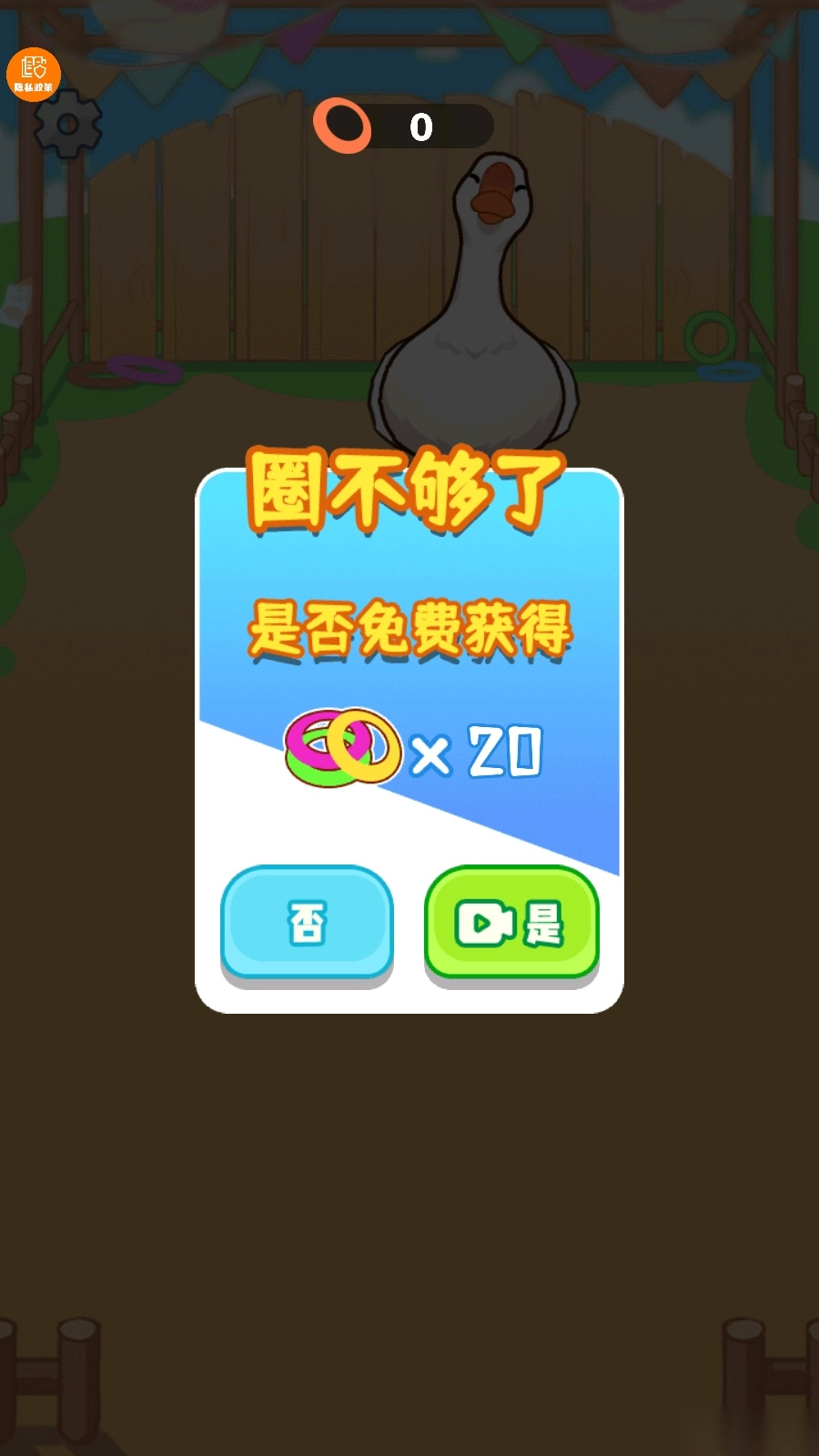 5、要是你的圈圈不够用了,可以通过观看广告来获取新的圈圈