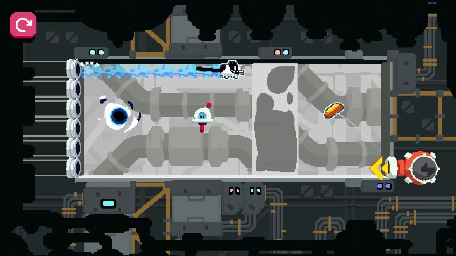 3、每一关都是设计精巧的物理乐园。你得借助CATO旋转的身体去撞击开关、推动方块、荡过摆锤,还能在光滑的冰面和粘稠的蜂蜜里体验完全不同的旋转阻力。