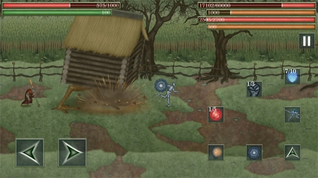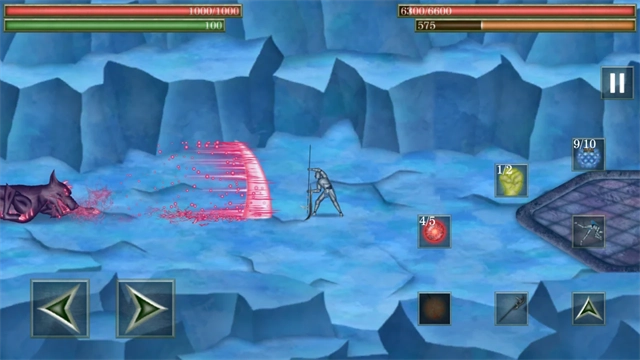 2、点击翻滚按钮可在敌人发起攻击时进行躲避,需精准把握敌人的进攻时机完成翻滚闪避,每次承受伤害都会导致生命值大幅减少。