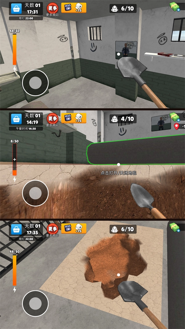 3、随着关押天数的增加,玩家能在这里积累更多资金,挖掘时还可以借助其他工具来辅助操作。