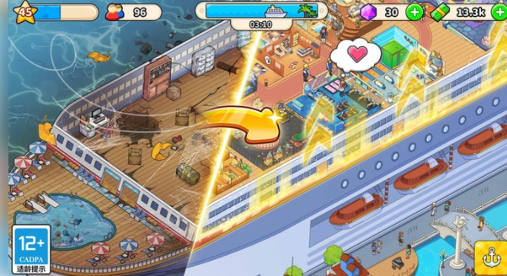 3. 高度自由的装饰系统与真实的运营模拟,使玩家如同身临其境般置身于一艘真正的豪华邮轮之中。