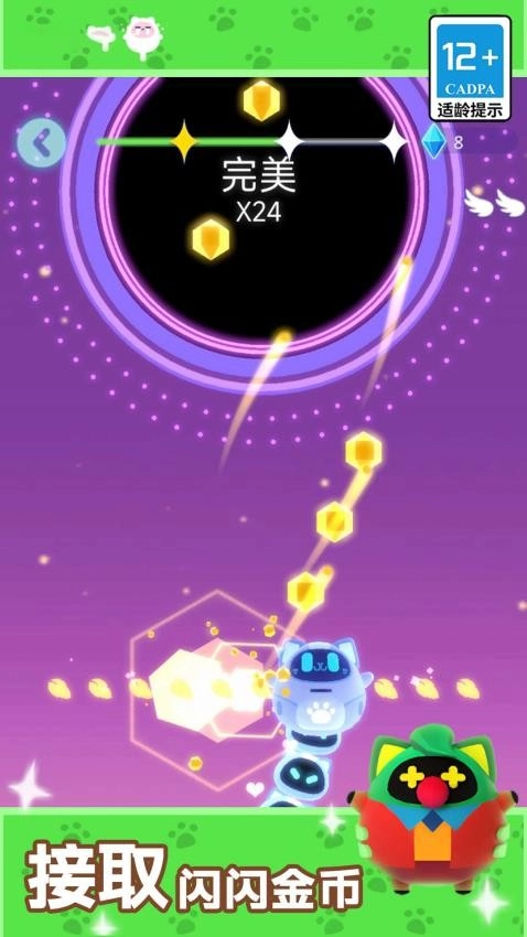 2、当猫咪点击对应的音符后,会呈现出不少精美的特效。