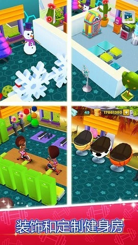 2、装饰定制健身房已完成全面改造,所有装饰品均可随意点击更换,能够构建出极具特色的装饰风格,这一功能十分亮眼。