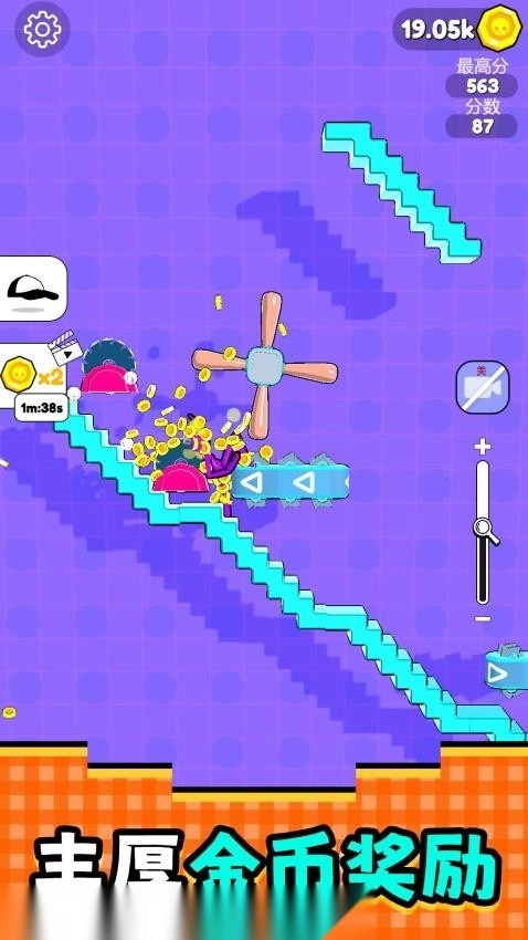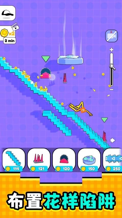 从楼梯、旋转锯片到弹簧、炸弹等各类元素,你所做的每一个选择都会带来独一无二的体验。规则看似简单,却绝不普通。你的布娃娃翻滚、跌落并与你放置的障碍物碰撞得越频繁,收集到的硬币就会越多。