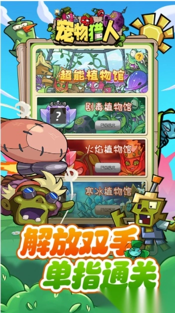 宠物猎人是一款类似《植物大战僵尸》的游戏,游戏中会有僵尸进攻你的花园。你需要通过发育经济、获取金币来购买不同的植物,将植物布置在花园里就能阻挡僵尸的进攻。这些植物会自动攻击僵尸,你可以搭配寒冰类植物来减速僵尸,用剧毒类植物让僵尸中毒,还能借助火焰类植物使僵尸爆炸燃烧。游戏里的植物种类十分丰富,多达一百多种,玩家可以自由组合不同的植物阵容来对抗僵尸。此外,植物还具备技能攻击功能,释放强大的技能就能轻松击败僵尸,感兴趣的朋友可以尝试体验。