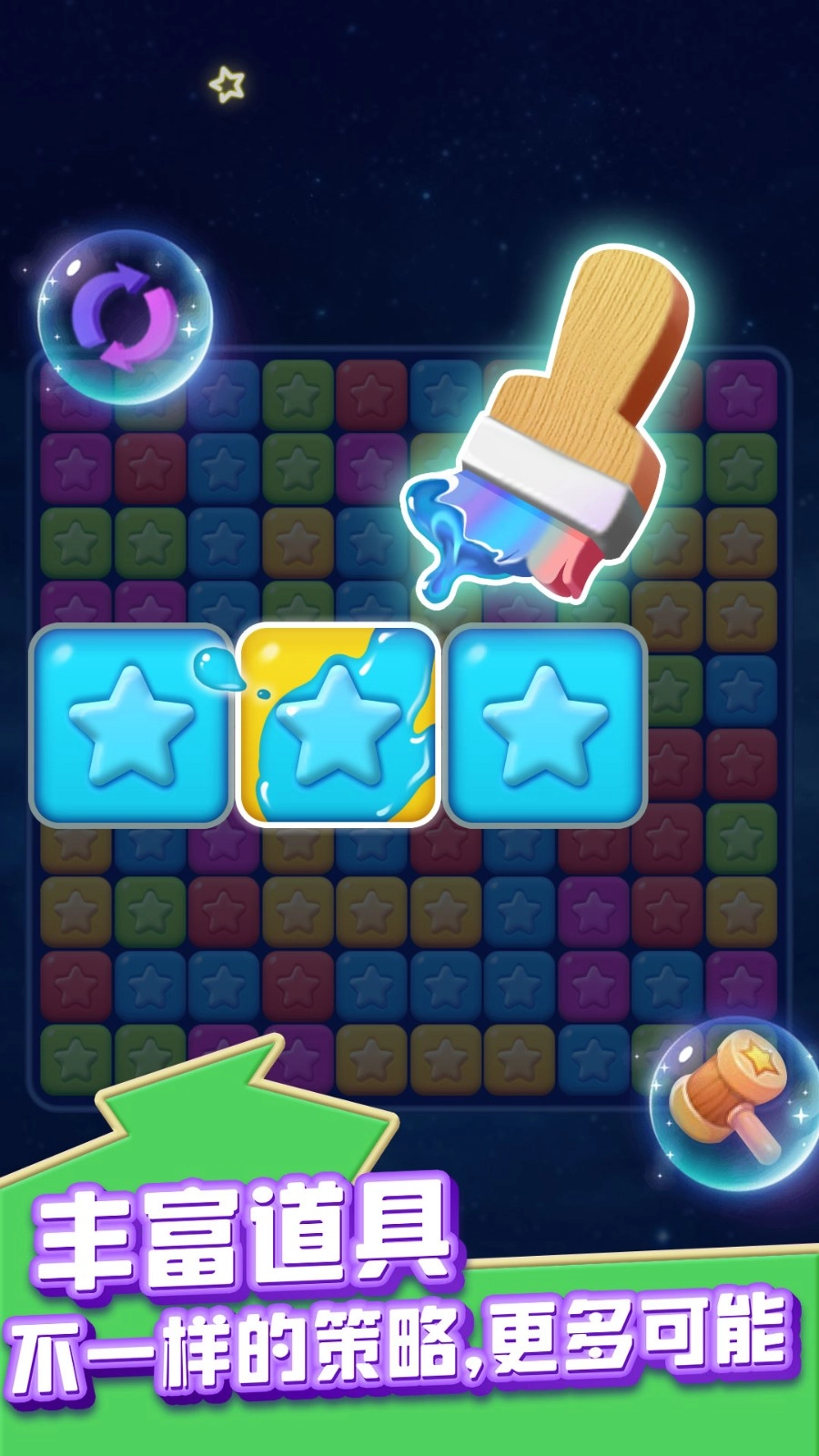 3、星星消除的特效尤为精彩,能直接生成全新的特效画面,带来别具一格的视觉体验,并且还会触发特殊音效,让闯关过程更具沉浸感,这一点不容小觑。