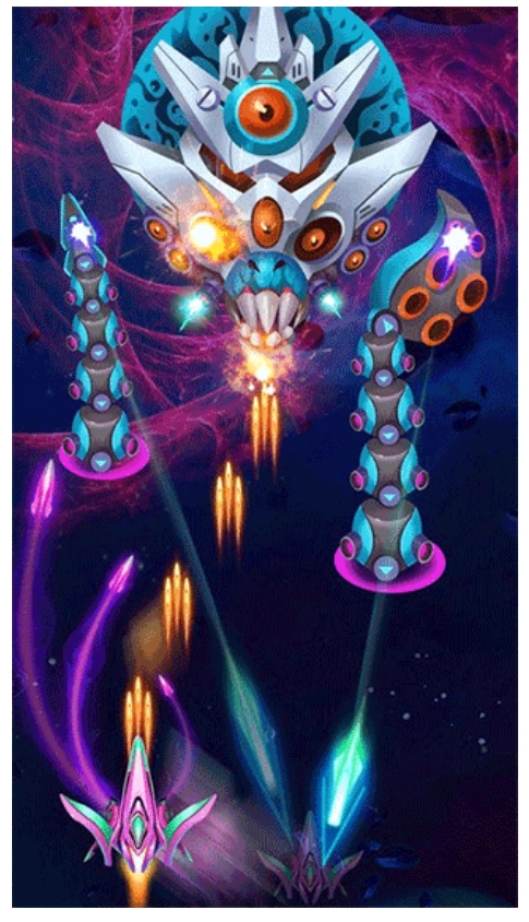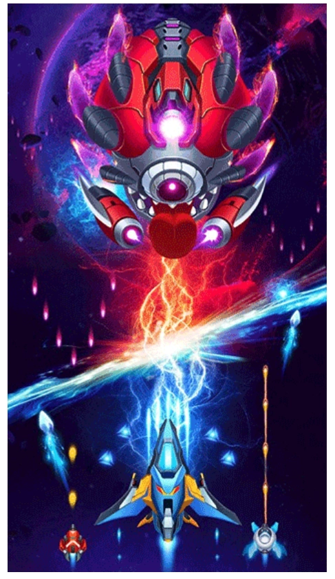 2、经典的射击闯关体验,华丽的弹幕射击玩法,在宇宙战场上尽情冒险,过程中还能获取大量道具,完成不同的闯关内容,收集各种战机,顺利闯关并击败boss。