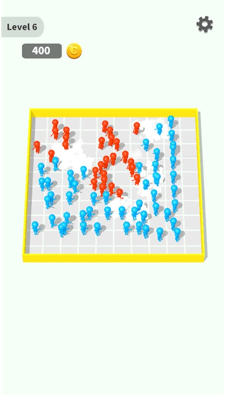 5、当所有区域都被占据后,已占据的区域会转化为小人并展开对决,只要消灭对方的小人就能取得胜利。