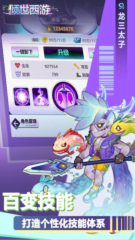 《倾世西游》是一款赛博风格的放置休闲游戏。游戏内拥有众多能力独特的英雄,融入了潮流酷炫的赛博元素,还具备情节跌宕起伏的故事线与新颖有趣的回合制战斗玩法。一个全新的世界与故事,正等待你去培育它萌芽,并陪伴它茁壮成长。