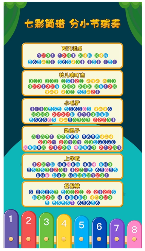 2、轻松掌握1-8个阿拉伯数字,跟着小节提示演奏,操作方式简单,还有详细教程,更容易上手。分小节练习,持续学习,就能弹出喜爱的音乐,成为小小音乐家。