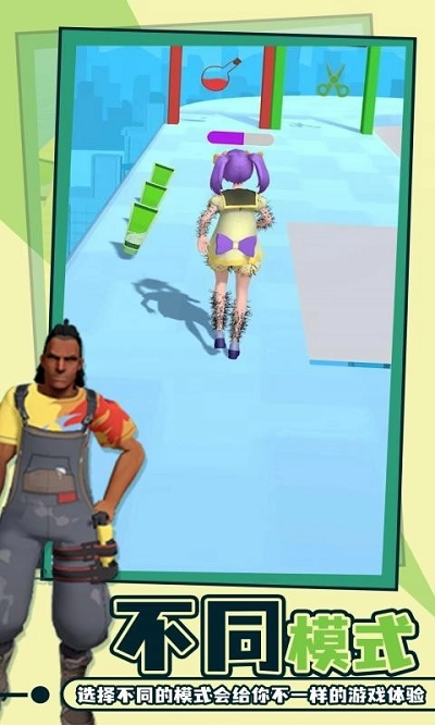 1、拥有浓密毛发的角色,玩家需以跑酷方式,在行进的道路上收集脱毛膏,助力角色完成腿毛去除,直至全身毛发完全褪净即可获胜。这是一款趣味十足的休闲玩法,还有丰富内容等待解锁。
