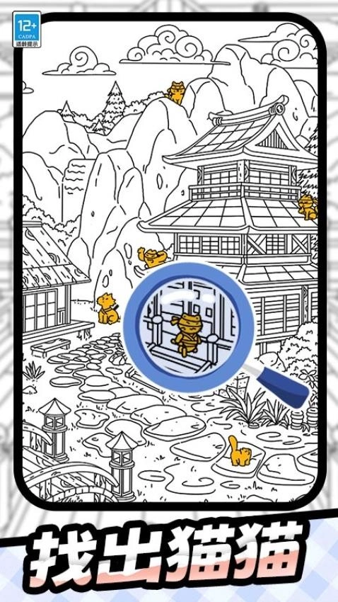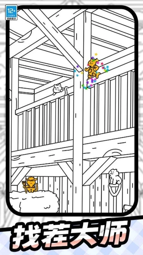 进入后,屏幕上会展现出一幅幅精心绘制的场景画面,可能是温馨的卧室、热闹的街道、静谧的花园等。这些场景看似普通,实则藏着可爱猫咪的身影。猫咪或调皮地躲在窗帘后,只露出毛茸茸的尾巴;或蜷缩在书架角落,与周围物品巧妙融为一体;又或者藏在花丛中,只露出一双灵动的眼睛。
