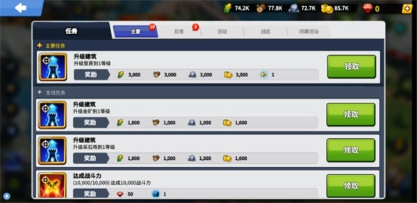 资源采集维持基本收益,派遣合适的采集队收集材料。