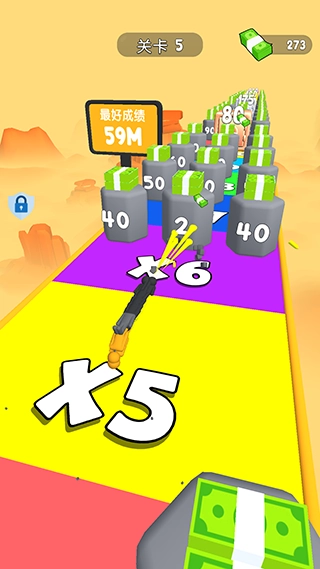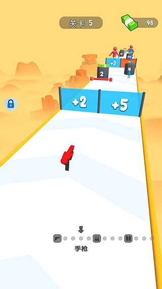 跑酷玩法的造型设计十分有趣,小人能变身为枪支的模样,既酷炫又新奇,大大提升了游戏的可玩性。
